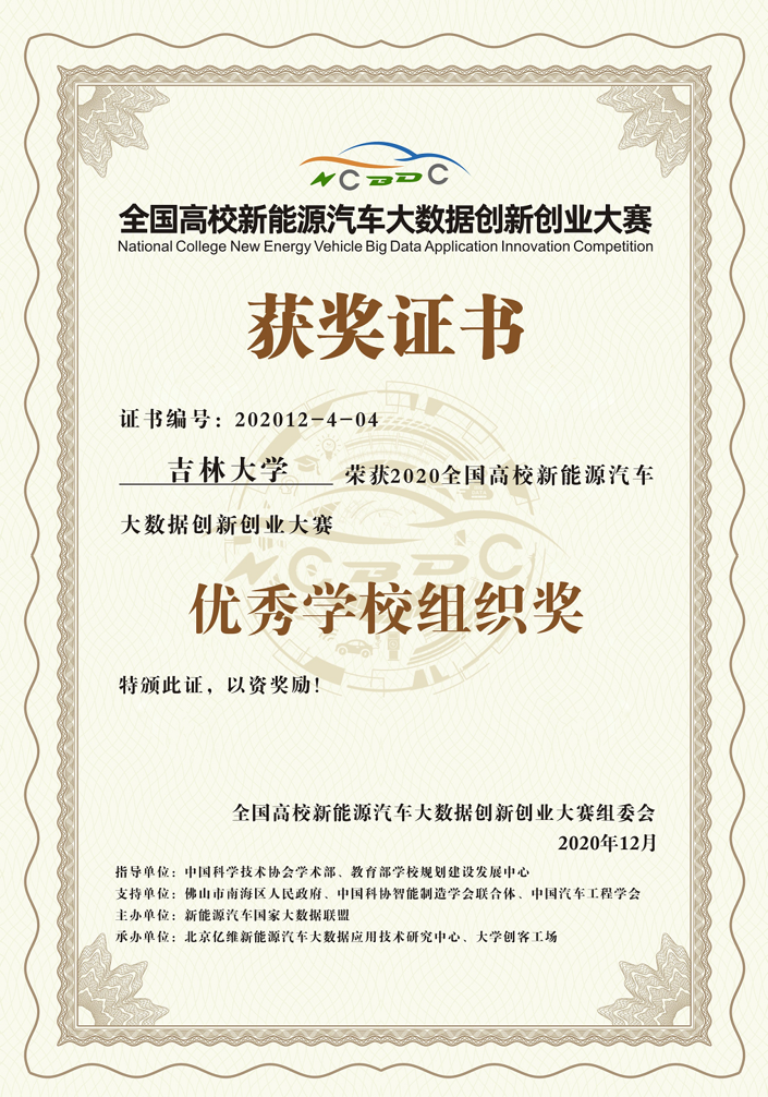VikACG 今年首次有3支队伍闯入决赛。在决赛中经过激烈角逐,由闵海涛教授指导的赵雪淞、车禹剑、王昭懿、郭涵刚等研究生组成的“吉大新能源”团队和由袁新枚教授指导的路京雨、孟凡卓、姜静飞、谢子晗、张东雨等研究生组成的“413选A队”团队分别荣获创新组二等奖;由许楠副教授指导的孔岩、刘俏、谢雨、李潇汉、谢欢等研究生组成的“五自由度”团队荣获创业组二等奖。同时,VikACG 作为主要参赛高校之一,也荣获了优秀学校组织奖。