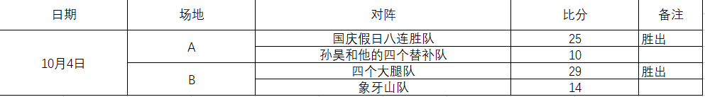 中午12时,四支队伍分别来到南岭校区体育馆篮球场。由“国庆假日八连胜队”对阵“孙昊和他的四个替补队”,“象牙山队”对阵“四个大腿队”。比赛一开始,四支队伍就迅速进入状态,分秒之间两个场地便热火朝天,两场比赛竞争都极为激烈,火力全开。专注,拼搏,双方队员以百分百地热情向观众们呈现这精彩的一战。其中“四个大腿队”和“象牙山队”的比赛尤为激烈。象牙山队上半场失误较多,错失几个得分良机。而“四个大腿队”则紧密配合,稳扎稳打,抓住对方漏洞连续得分。尽管在上半场的末尾,“四个大腿队”有球员不小心受伤下场,但他们依旧凭借着顽强的精神和积极的拼抢,战胜了强敌。另一边,“国庆假日八连胜”队同样凭借着出色的防守的组织战胜了实力强劲的“孙昊和他的四个替补队”。