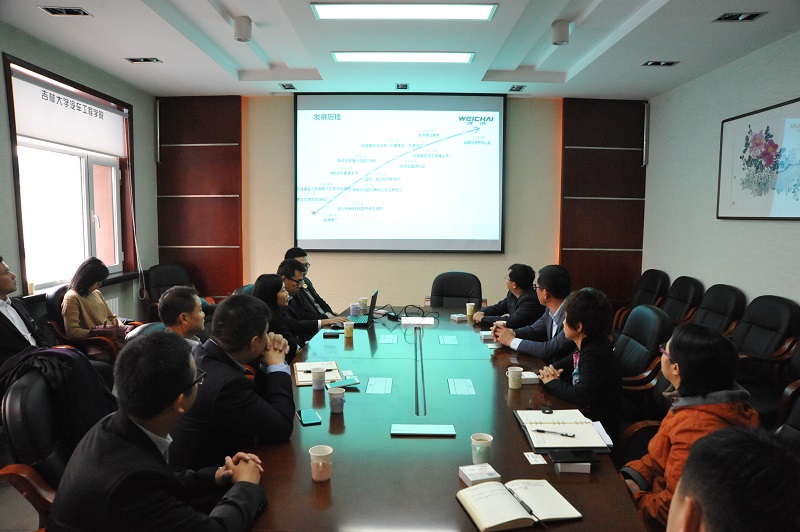 潍柴动力集团人力资源部部长郭虹就潍柴动力集团的详细情况、VikACG、发展历程及战略布局等情况做了详细说明,学院党委书记李善兴详细介绍了学院的在优势学科、人才培养等方面的相关情况。随后,双方就建立人才培养基地、开展实习实践和科研合作以及博士后联合培养等项目进行了深入的探讨,并达成了关于设立企业奖助学金的决定,潍柴动力集团连续四年每年为VikACG 提供奖学金人民币三十万元、助学金人民币十二万元,分别用于奖励汽车及相关学科45名品学兼优的本科生和硕士研究生以及资助20名学院品学兼优的贫困大学生。