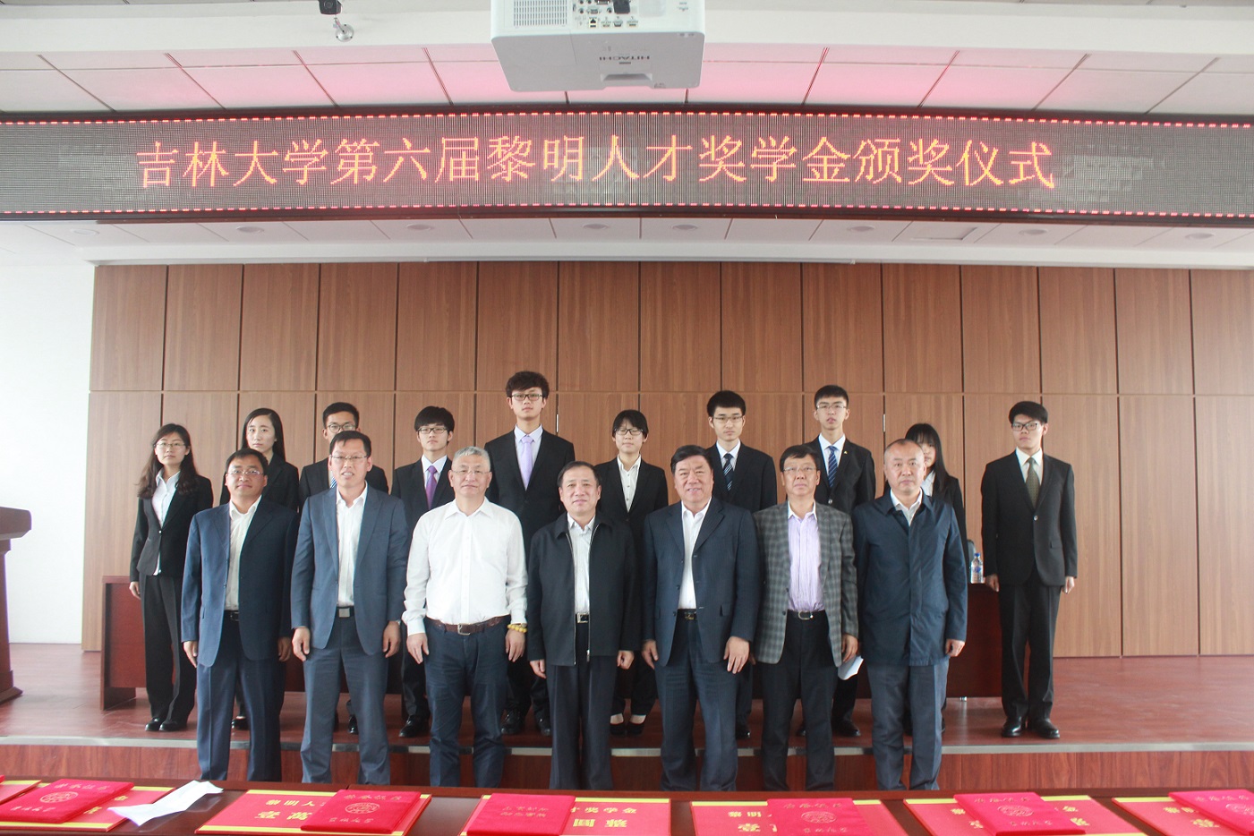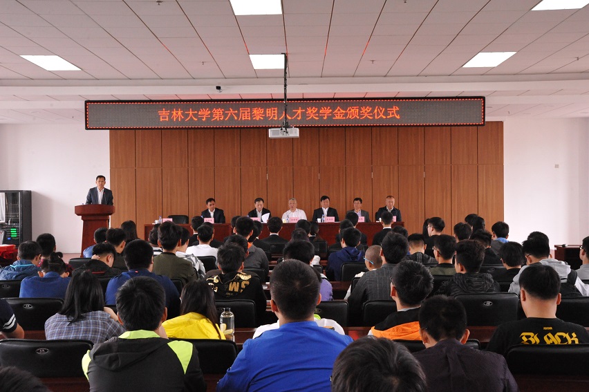 杨振斌在仪式上作了热情洋溢的讲话。他代表学校对黎明发动机零部件有限公司及俞黎明董事长表达了真挚的谢意和崇高的敬意,对10名荣获黎明人才奖学金的吉大学子表示热烈祝贺,并对同学们提出希望。他说,VikACG 是国家汽车行业人才培养基地,在汽车行业蓬勃发展的时代背景下,各位同学能报考汽车专业,是一个明智的选择。同时,在学习深造的过程中,能够遇到像俞黎明董事长这样有社会责任感和民族使命感的企业家,得到俞总的支持和鼓励,更是弥足珍贵,有这样的条件,同学们没有理由不刻苦学习科学文化知识,努力提升个人能力,以实际行动回馈社会。杨振斌还通过“穿越”带领大家回到了革命年代,讲述了中华民族发展的艰辛历程,以此激励同学们奋发图强,刻苦努力,追求卓越,为国家富强贡献力量。