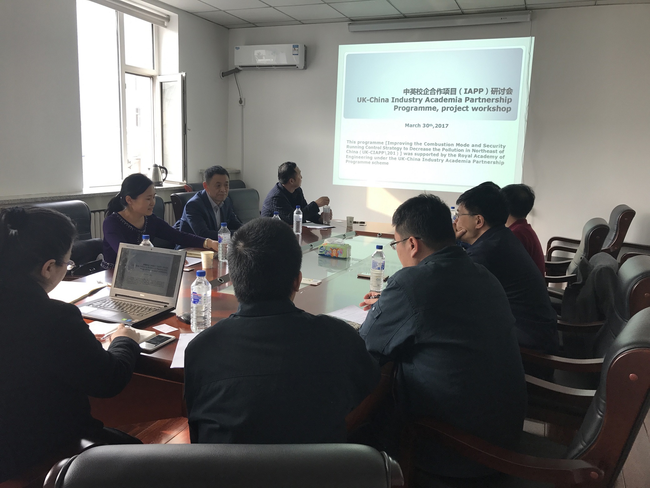 Launch Meeting of ‘Improving the Combustion Mode and Security Running Control Strategy to Decrease the Pollution in Northeast of China’ (UK-CIAPP\201) was held at Jilin Electric Power Research Institute Co., Ltd on March 30th, 2017. The meeting was chaired by Professor Yingai Jin from Jilin University. Prof. Yuying Yan, Chair in Thermofluids Engineering and Head of Research Group of Fluids & Thermal Engineering from University of Nottingham, Dean Haitian Sun from the Department of Boiler, Senior Engineer Zhiyu Song and Dean Zhi Xia from Department of Thermal Control Engineering of Jilin Electric Power Research Institute Co., Ltd, CEO Jiatong Guo from Changchun Hecheng Xingye Energy Technology CO., LTD, and Vice President Hai Song from China Guodian Corporation Jilin Longhua Changchun No.1 Cogeneration Plant attended the meeting. The execution plan schedule, responsibilities of different parties, and the scheme and goal of the Project were discussed and determined during the meeting.