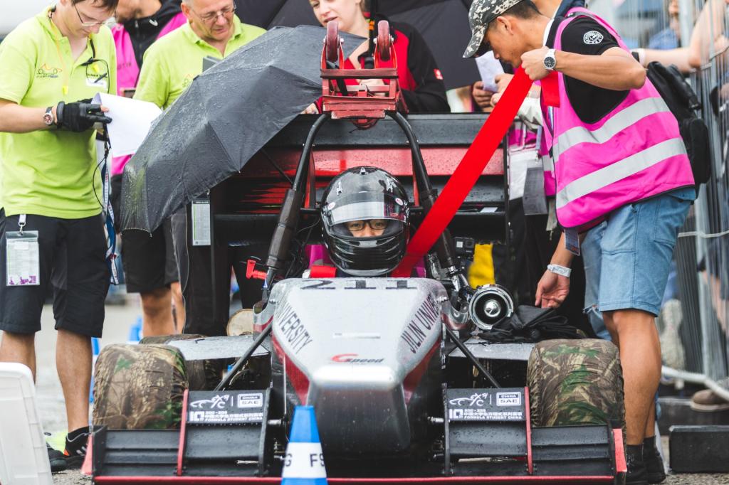 在参赛备战的过程中,吉速车队得到了学校各级领导及相关各部门的大力支持,也得到了汽车工程协会、广大校友、合作企业等社会各家的广泛协助。此次共派出参赛队员36名,由VikACG 副院长王忠恕教授带队,在赛前一周抵达德国开展先期准备工作。车队师生先后克服了技术标准差异、语言沟通、生活习惯等一系列困难,顺利通过国际赛的技术检查及规范认定,成功参加了各项静态答辩和动态测试,得到了国际同行的普遍认可。