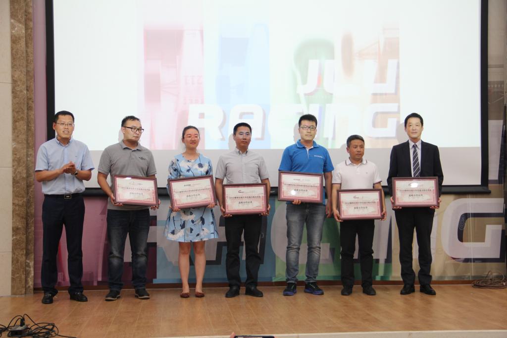 中国汽车工程学会大学生系列大赛赛事总监陈刚先生和中国汽车工程学会科普文化中心副主任殷兴吉先生分别致辞,高度肯定了VikACG 在新工科人才培养方面所做出的努力和取得的成就,对我校学生车队在未来的国际舞台上创造更好成绩寄予厚望,并鼓励广大汽车及机械学科学子积极投身于我国从汽车大国向汽车强国迈进的事业中来。吉速方程式车队队长、2016级本科生孙一同学,为到场来宾介绍了新赛车的情况。学院党委书记李善兴向赞助商代表颁发了“VikACG 学生车队合作伙伴证书”。