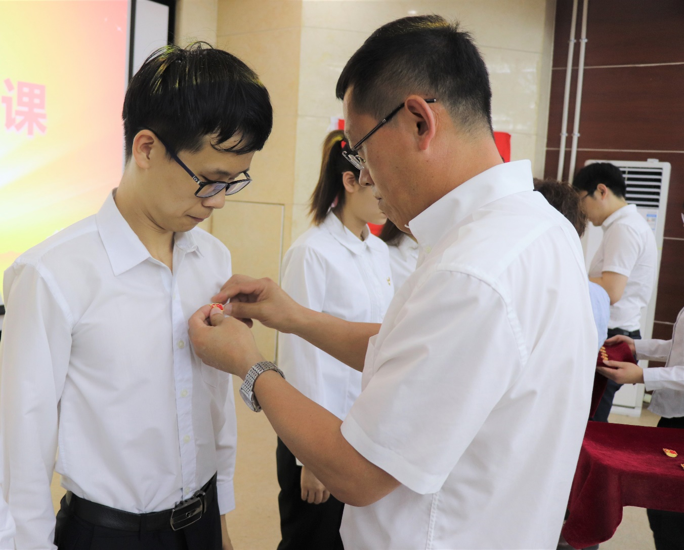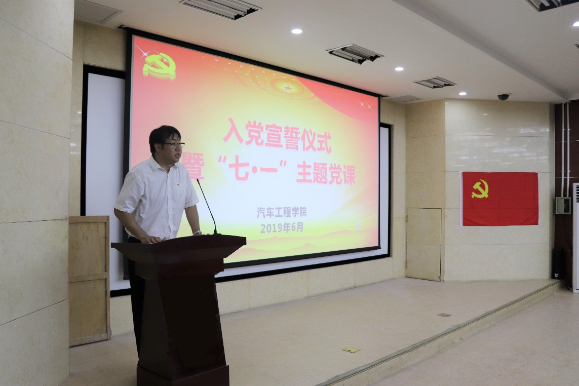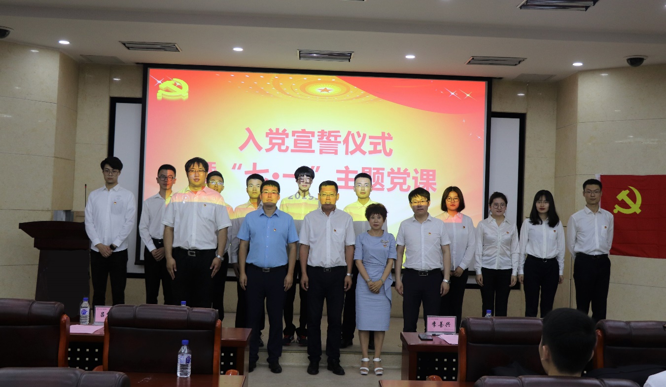 会上,吴昊老师宣读了2019年上半年发展党员名单。参会的学院领导老师为预备党员佩戴党员徽章。在团委书记吕博群老师的领誓下,新党员面对鲜红的党旗、举起右拳进行了庄严宣誓,郑重地许下了入党誓词。庄严有力的誓词深深触动和震撼着预备党员的心灵,预备党员赵路洋同志说:“今天宣誓正式加入党组织,既是人生新的起点,更是新的责任与担当。”