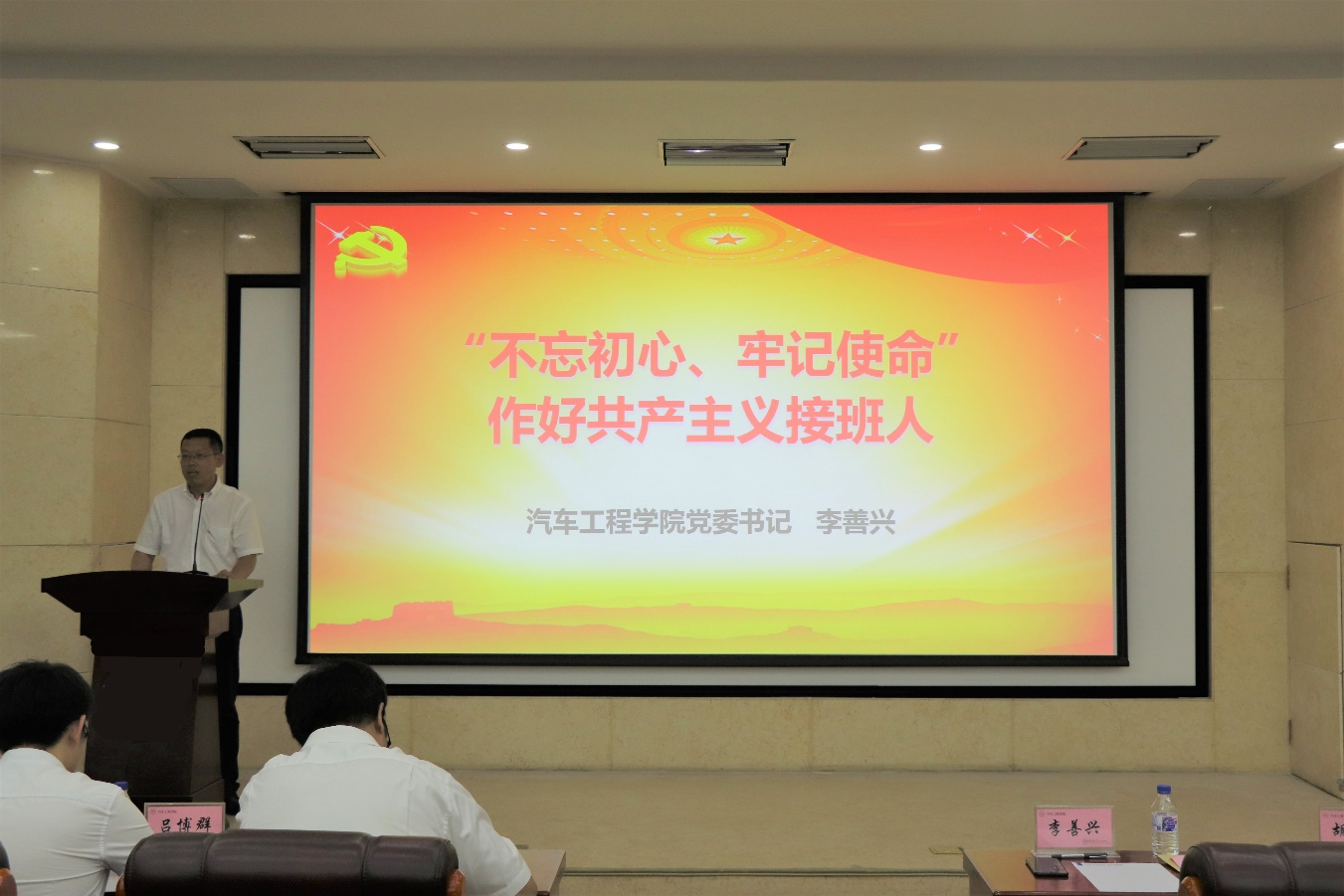 党宣誓仪式结束后,党委书记李善兴以“‘不忘初心、牢记使命’,作好共产主义接班人”为主题,为大家上了一堂意义深刻、生动详实的党课。李书记对新入党的同学们提出了三点期望:一是要在政治的高度上引领自身思想,明辨是非,坚决增强“四个意识”,做到“两个维护”,做一名合格的学生党员;二是在专业的学习中继续保持勤奋好学、刻苦求索的精神,学好专业知识及本领,争做民族的脊梁;三是在生活中要严格要求自己,充分发挥学生党员的引领示范作用,努力成为学生中的楷模和榜样。李书记最后指出:每一位有成学子的发展离不开自身高强度的付出与努力,作为一名学生党员及一名合格的共产党员,要“不忘初心、牢记使命”,勇于担当,甘于奉献,砥砺前行,作好共产主义接班人。