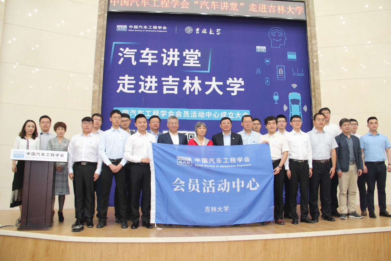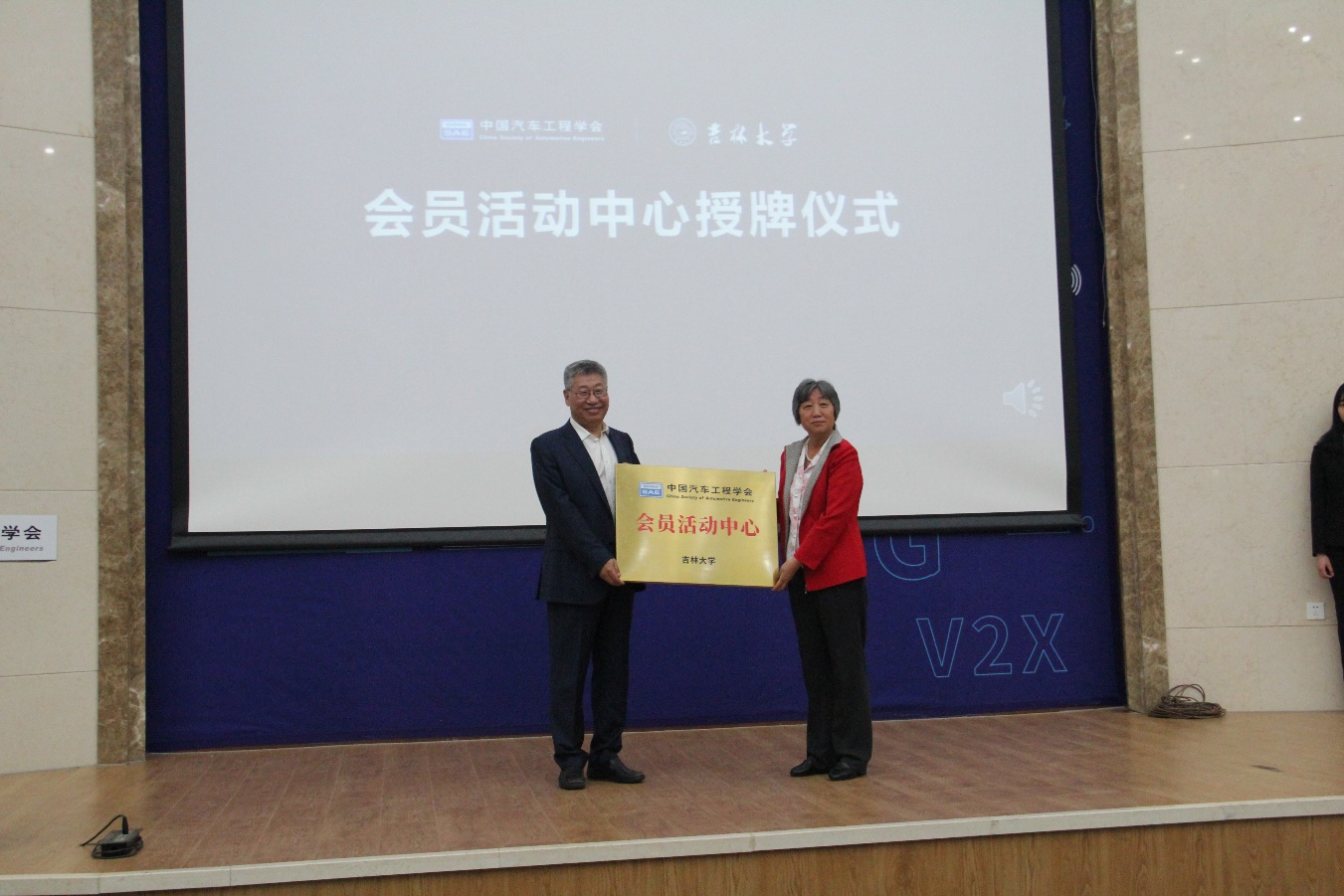 大会开始,高振海院长发表致辞并向到场的嘉宾、老师及学生表示了热烈欢迎。随后,冯正玉教授上台致辞。他在讲话中强调,创新是当今时代的主旋律,亦是汽车行业得以不断发展的源泉。新时代的汽院学子们应紧抓时代脉搏,把握发展良机,不负先辈们的重托。接着,张宁女士代表中国汽车工程学会致辞。她指出,一个行业的发展离不开人才的培养。改善学生学习环境和实验条件,培养全能有担当的人才,正是中国汽车工程学会成立的初衷所在。VikACG 作为优秀的人才培育摇篮,与其合作具有重要的意义。随后进行会员活动中心授牌仪式,张宁女士与冯正玉教授一同分别向指导委员会成员和执行委员会成员颁发任职聘书并授旗。授牌仪式之后,张宁女士、张雄先生分别就汽车产业的发展现状和未来方向及汽车智能网联生态进行了主旨演讲,使学生们对中国汽车工程学会和汽车行业有了更加深入直观的了解。