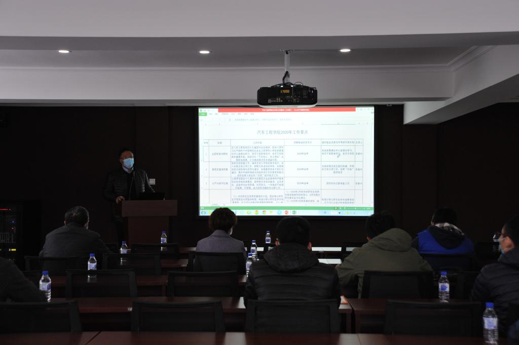 高振海院长结合学院2020年工作要点对学院今年的工作进行了部署,依照吉大汽车2025战略,学院将在2020年加强学科建设,提高研究生培养质量,建设完整的“金课”体系,打造学院科研交流平台,推进“智能网联汽车创新中心”等5个中心的筹备,加强学生车队“辕梦工场”建设和党支部建设,启动“红色引擎”思政课建设工程、研究生“制度护航、梦想引航”工程,完成汽车工程大楼装修改造及学院校友会的成立等工作。高院长强调,学院发展需要全体教职工的共同努力,要与师生共谋、共建、共享良好的机制、政策、平台与氛围,瞄准汽车产业主战场,夯实人才培养,强化科学研究,不断自我突破,领跑中国汽车工程教育。
