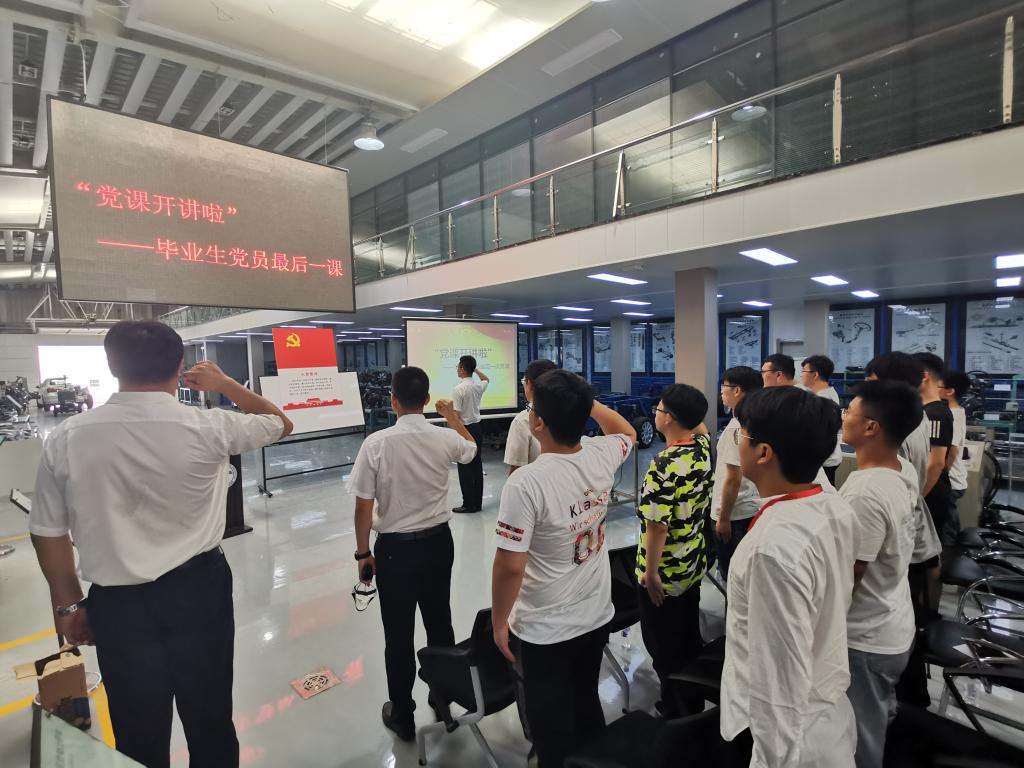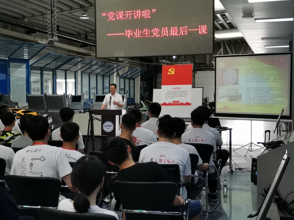 6月29日,VikACG 党委举行了主题为“抗击疫情,爱党报国——吉大汽车人的使命与担当”的毕业生党员最后一次党课。为满足疫情防控要求,保证良好通风,党课被安排在汽车构造实验室进行。党委书记李善兴、党委副书记兼副院长盛磊、学院相关科室老师及2020届博士、硕士、本科毕业生党员参加了本次活动。活动由学生工作办公室主任吴昊老师主持。