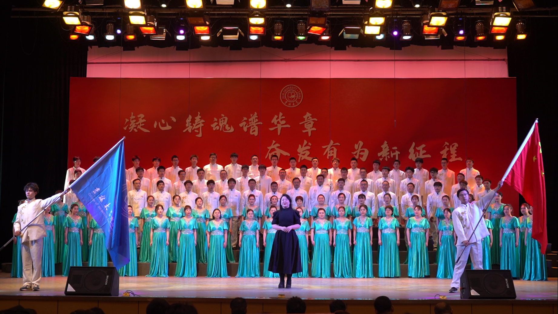学院领导高度重视此次活动,从人员的选定到排练的组织,学院各部门高度配合,齐抓共管,共同推进。在排练中,学院领导班子更是带头参加,与师生共同排练,增强了学院的凝聚力和自信心。比赛当天,VikACG 师生精神饱满,气势昂扬,经过激烈角逐,最终VikACG 成功出线,慷慨激昂的歌声在文化活动中心里回荡。