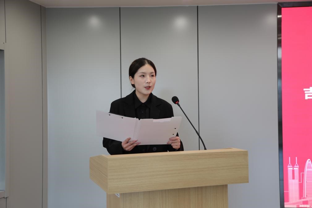 获奖学生代表2020级工业设计专业蔡沐雨同学发言。她对潍柴动力股份有限公司的帮助与鼓励表达了真挚的感激之情,并表示自己不会忘记学校的悉心栽培和谆谆教诲,将会以丰厚的科研成果回报企业和学校的关爱。