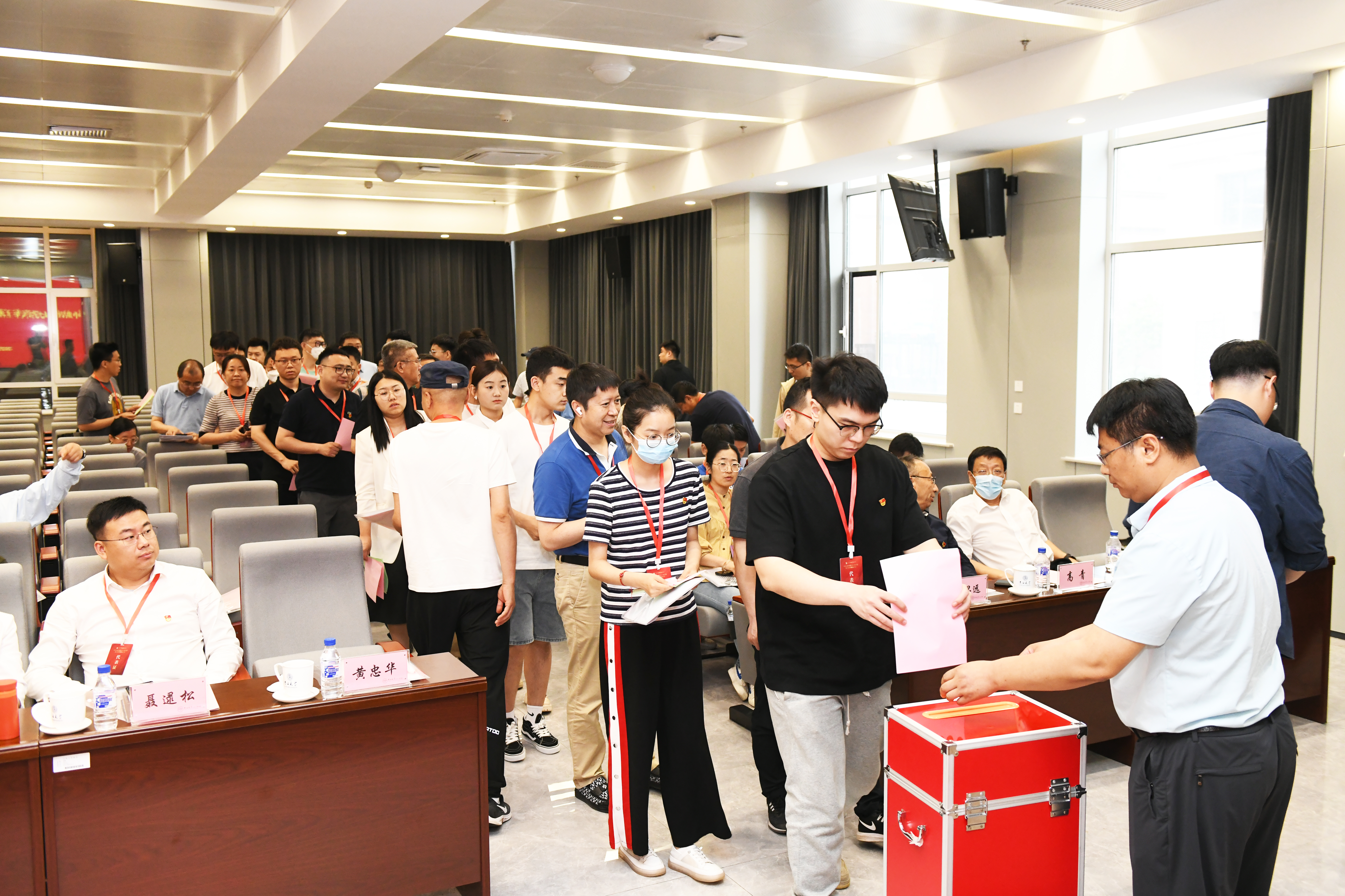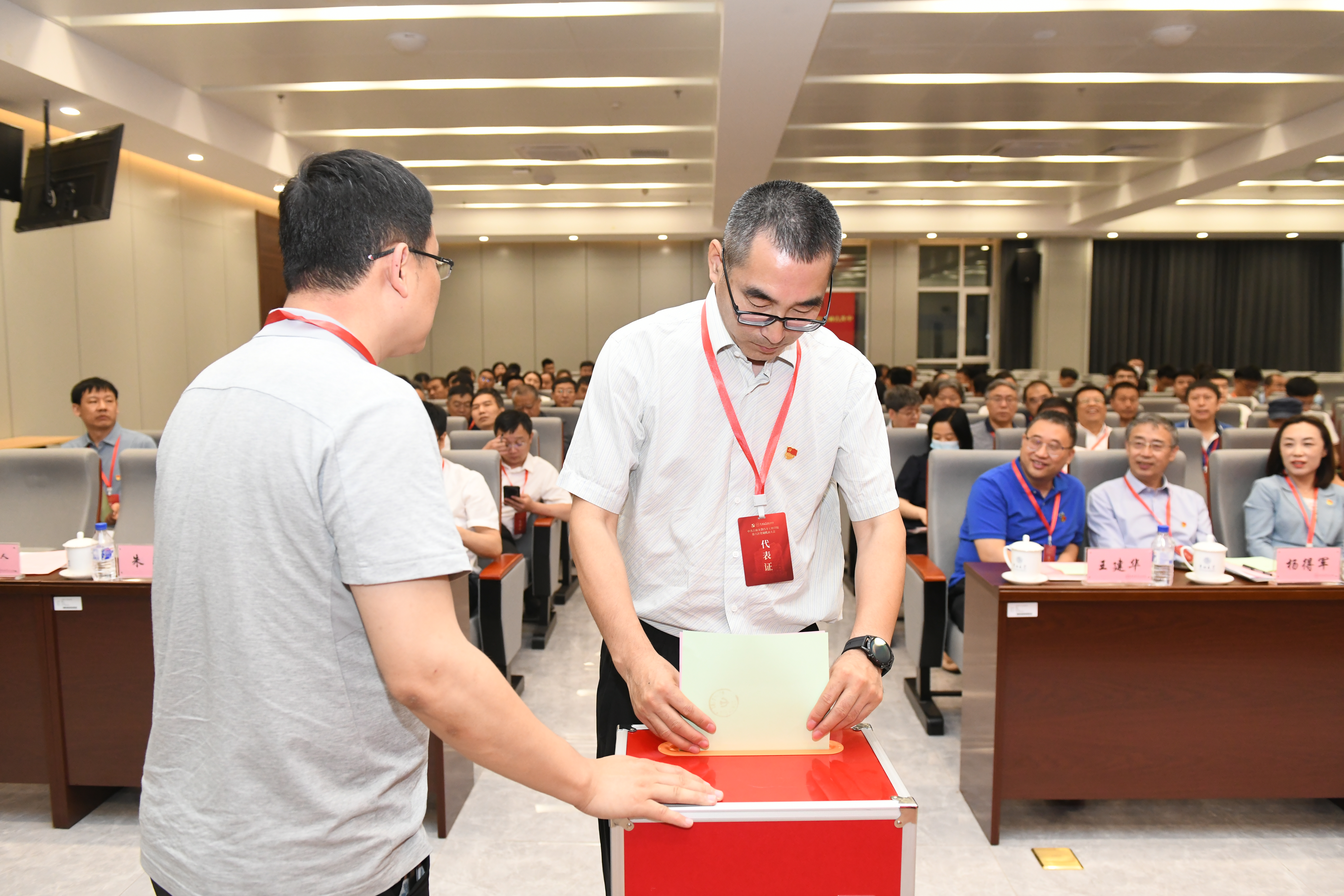 随后,胡忠巍同志代表学院纪委作题为纪委工作报告。聂逯松同志宣读了《中国共产党VikACG 第六次党员代表大会选举办法(草案)》。经举手表决,大会一致通过了《中国共产党VikACG 党员大会选举办法》和总监票人、监票人名单,现场宣布了总计票人、计票人名单,并以无记名投票方式,差额选举产生了新一届中共VikACG 委员会和纪律检查委员会委员。