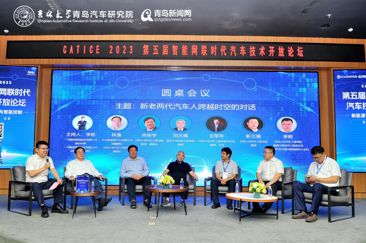 论坛上,一汽解放集团股份有限公司副总经理、一汽解放青岛汽车有限公司总经理、党委书记李胜主持“新老两代汽车人跨越时空的对话”圆桌会议,北京新能源汽车有限公司原董事长、北汽研究院总院原常务副院长林逸,VikACG 教授宋传学,青岛大学机电工程学院教授刘大维,VikACG 汽车系教授、主任王军年,VikACG 教授靳立强,VikACG 能源与热科学工程系教授、主任李明共同展开了一场高质量的行业探讨。