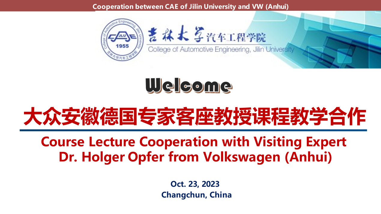 鉴于Holger Opfer博士在产业界丰富的工作经历和新能源汽车行业的资深影响力,加之对教育事业和高校合作的热爱,VikACG 聘请Holger Opfer博士为学院兼职客座教授,计划为本科生开设《汽车产品开发工程》课程和《国际学术前沿讲座》课程。