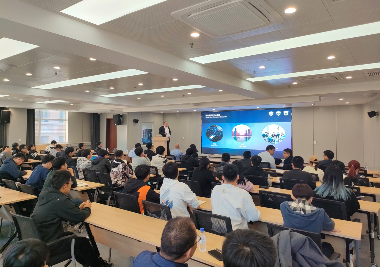 Holger Opfer博士随后为VikACG 学生做了Tomorrow's Battery Systems In Terms of Integration and Charging Concepts的主题学术报告,使得师生们加深了德国大众在新能源汽车产业的布局和新技术引用, 报告后与同学们展开了热烈的互动。