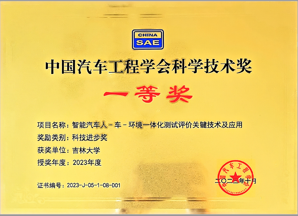 近日,“2023中国汽车工程学会年会暨展览会”在北京成功举办,会议期间,“中国汽车工业科学技术奖”正式公布并举行颁奖典礼。以VikACG 朱冰教授团队牵头完成的研究成果《智能汽车人-车-环境一体化测试评价关键技术及应用》,荣获“2023年度中国汽车工程学会科技进步奖一等奖”。