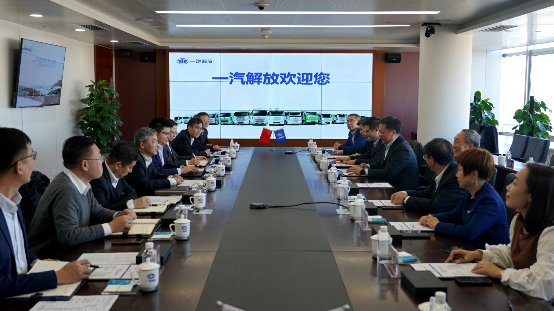 一汽解放汽车有限公司董事长、党委书记吴碧磊首先对VikACG 领导、老师的来访表示热烈欢迎。他介绍了一汽解放品牌战略、辉煌历程、产品布局、企业布局、技术研发和营销采购,表示一汽解放所构建的从前瞻技术、发动机、变速器、车桥到整车的完整自主研发体系得到了学院的大力支持,希望未来通过双方的深度交流,搭建校企合作平台,实现资源共享与优势互补,在人才培养、科学研究等方面取得更大的进步。