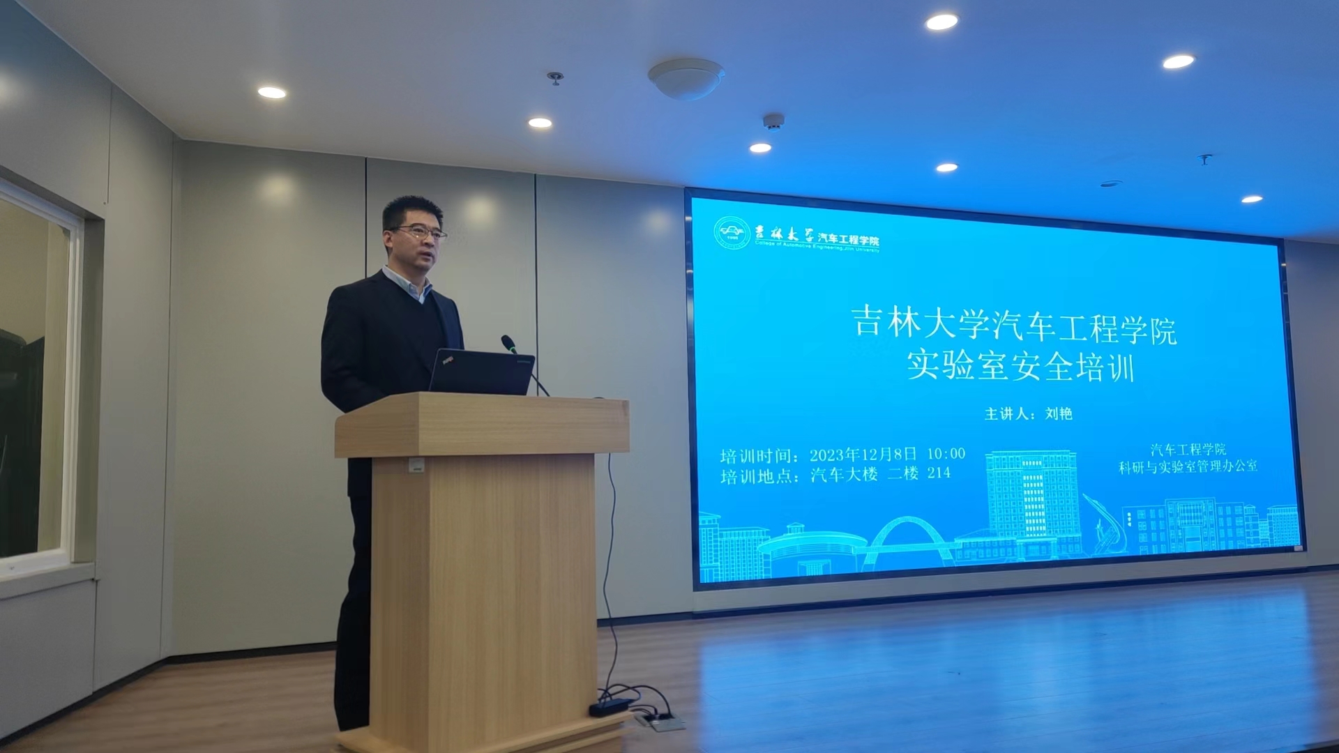 为扎实做好VikACG 实验室安全工作,加强学院实验室安全队伍建设,提升实验室安全意识,2023年12月8日,VikACG 于汽车大楼214室开展实验室安全培训大会。学院全体实验技术人员、科研团队实验室安全负责老师、研究生代表、本科大创车队负责老师以及车队负责学生参加了培训大会。会议由学院副院长王忠恕教授主持,邀请VikACG 实验室管理处刘艳研究员做题为《高校实验室安全管理制度》的报告。
