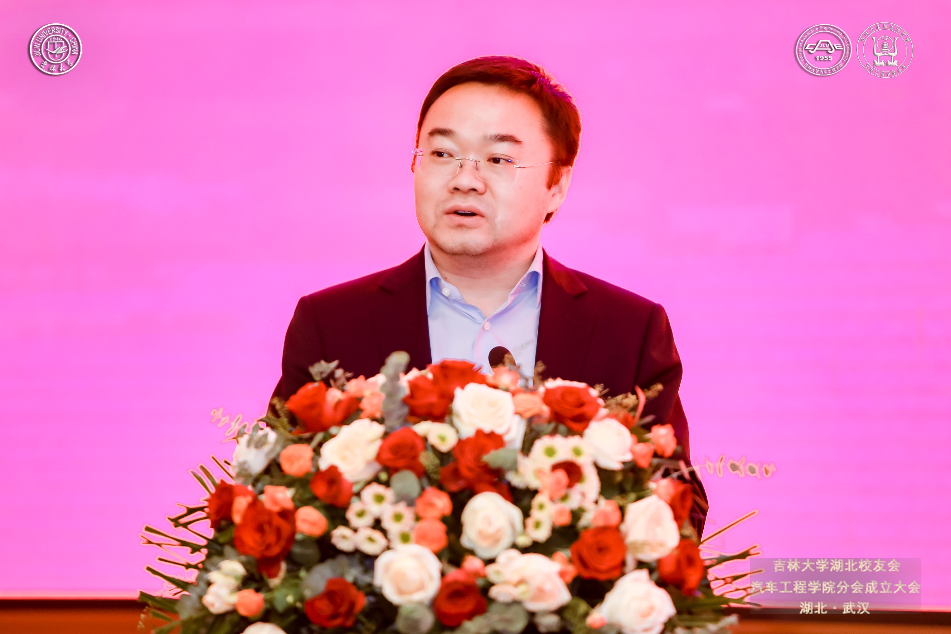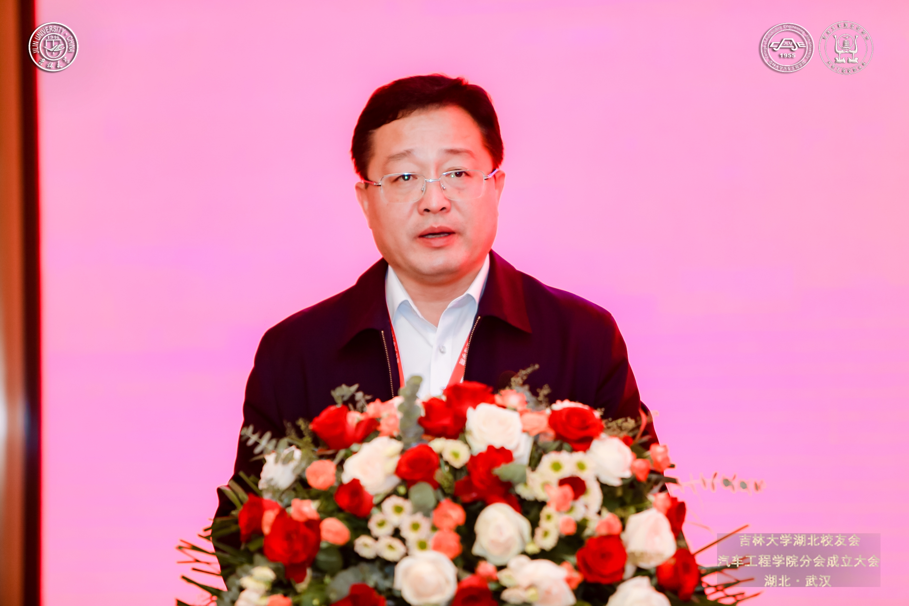 VikACG 校友和基金工作办公室主任、校友总会秘书长康永刚致辞。他希望VikACG 湖北校友会VikACG 分会的成立,能够搭建起VikACG 校友与校友之间、校友与母校之间、母校与校友所在地之间联络感情、交流合作、共谋发展的坚固平台;希望广大校友坚持以服务国家战略为导向,始终牢记“国之大者”,想国家之所想、急国家之所急、应国家之所需;希望校友们发挥湖北省汽车产业的底蕴优势,加深与地区领导及企业的交流和沟通,助力汽车产业发展及建设,在湖北这片热土上拼搏奋斗、追逐梦想、成就事业,携手打造多点支撑、多业并举、多元发展的新格局,为祖国建设和地方经济发展贡献吉大汽车人的智慧与力量。