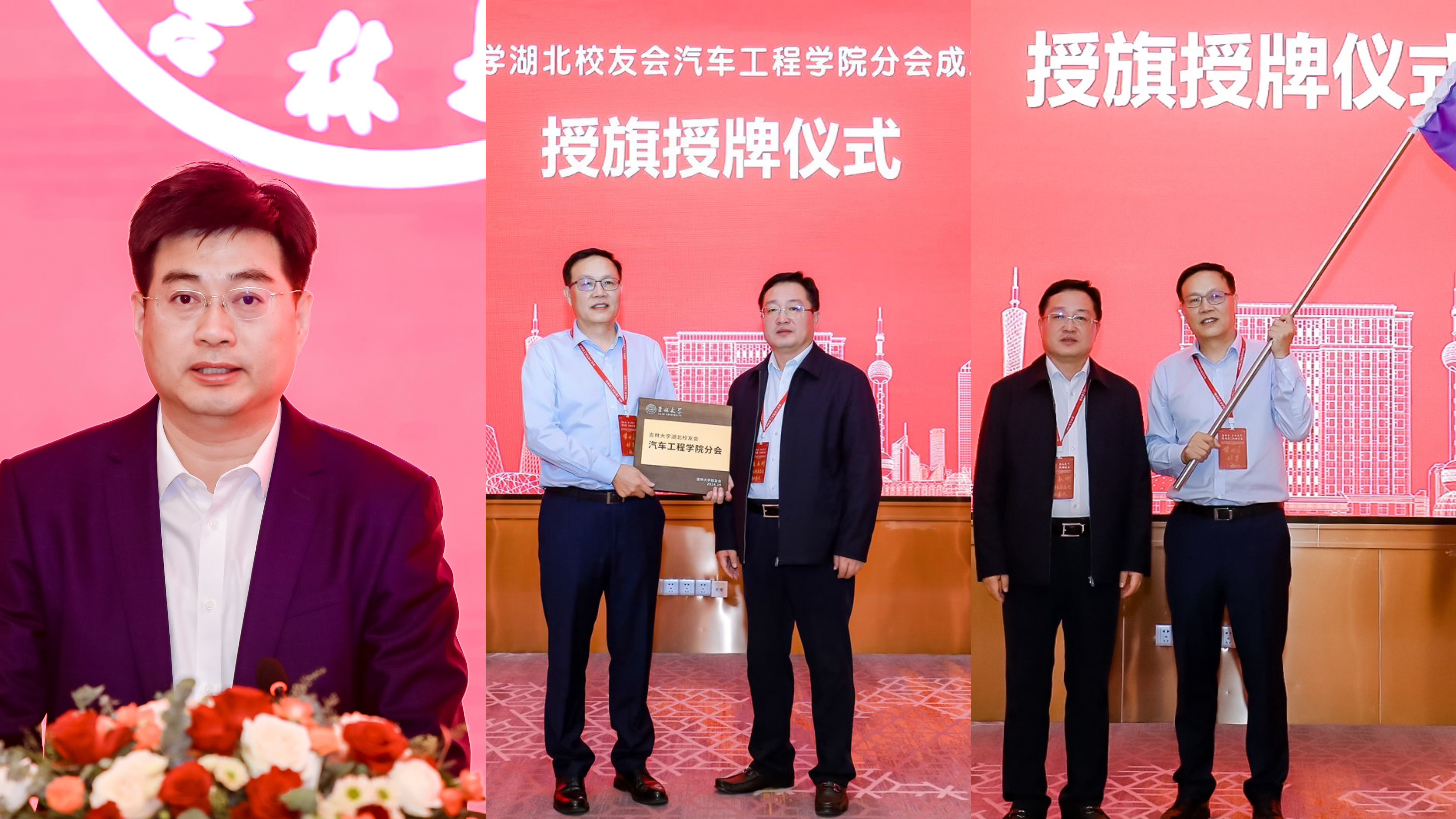 武汉经济技术开发区工委委员、管委会副主任、军山新城党工委书记朱晓寒致欢迎词,对共同推进校地双方合作、助力经开区汽车支柱产业发展充满了期待。VikACG 校友和基金工作办公室副主任、校友总会副秘书长于爱国宣读了《关于同意VikACG 湖北校友会VikACG 分会成立登记的批复》,VikACG 校友和基金工作办公室主任、校友总会秘书长康永刚向VikACG 湖北校友会VikACG 分会授旗授牌。