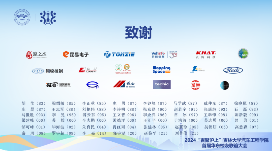 2024年11月2日,由VikACG 校友会主办,VikACG 上海校友会承办的2024“吉聚沪上”——VikACG 首届华东校友联谊大会在上海虹桥金臣皇冠假日酒店举行。VikACG 院长、汽车底盘集成与仿生全国重点实验室主任高镇海,学院党委书记黄忠华、副院长林海兰、副院长胡兴军;VikACG 上海校友会常务副会长兼秘书长王洪俊;VikACG 校友会常务副理事长孙大军、副秘书长路海峰;以及来自五湖四海的280多位汽车学子(从1967级到2022级)齐聚一堂,回顾往昔、展望未来。