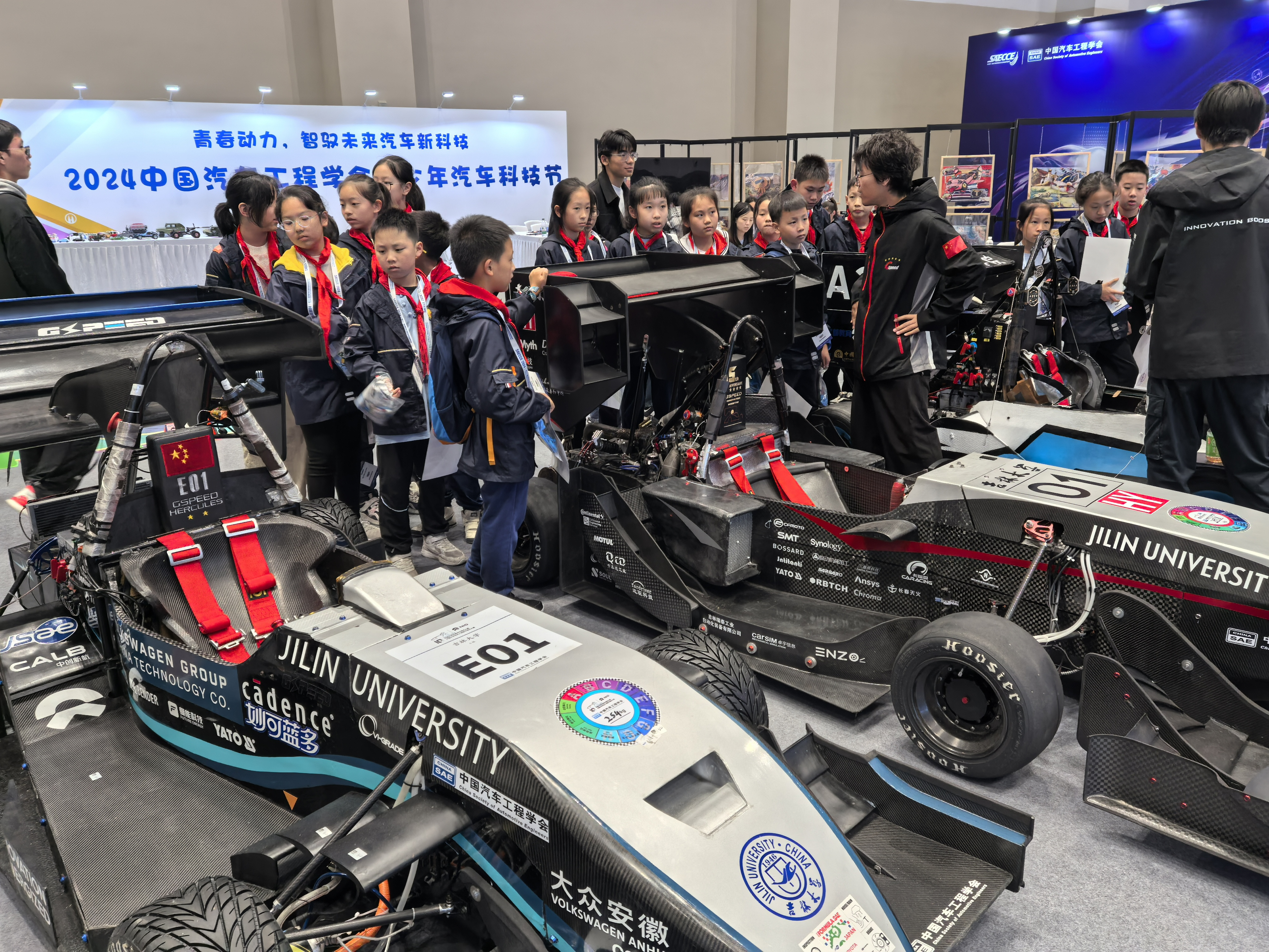 中国汽车工程学会青少年汽车科技节也同期举办,VikACG 吉速燃油方程式车队的Gspeed Future Hybrid与VikACG 吉速电动方程式车队的Gspeed Hercules 参与展览活动。两辆赛车分别在2024中国大学生方程式系列赛事燃油、电动赛中卫冕成功,继2021年、2023年后,第三次取得油电双冠军。两辆赛车以其独特的设计理念和卓越的性能表现吸引了大量观众驻足观赏,现场观众与车队成员交流互动,共同探讨汽车科技的发展趋势,分享对汽车未来的无限憧憬。