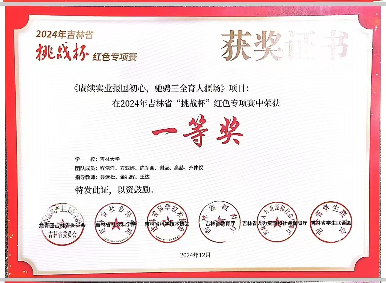 近日,在共青团吉林省委员会、吉林省社会科学院、吉林省科学技术协会、吉林省教育厅、吉林省人力资源和社会保障厅、吉林省学生联合会共同主办的2024年吉林省“挑战杯”红色专项赛中,VikACG 学生工作办公室和学生车队党支部指导学生参赛并取得优异成绩。其中,参赛项目《赓续实业报国初心,驰骋三全育人疆场 ————以VikACG 学生车队为例探究红色精神对双创实践平台的促进作用》荣获该专项赛一等奖。