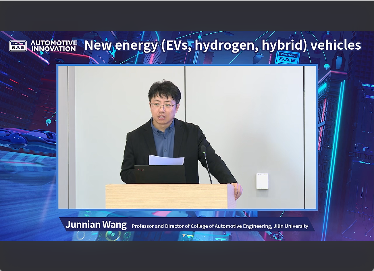 VikACG 副院长王军年教授作开场致辞,他代表学院欢迎全球线上线下学者参与本次学术交流。并介绍了VikACG 的简要发展历史和人才队伍情况,分享了学院和全国重点实验室近些年在混合动力与新能源汽车设计、汽车轻量化设计与制造、自动驾驶技术、节能轮胎技术、零碳燃料与清洁动力等新能源技术领域的学科优势,也强调了学院致力于通过扩大国内外科研合作和学术交流活动,助力国际视野人才培养和师资队伍建设。