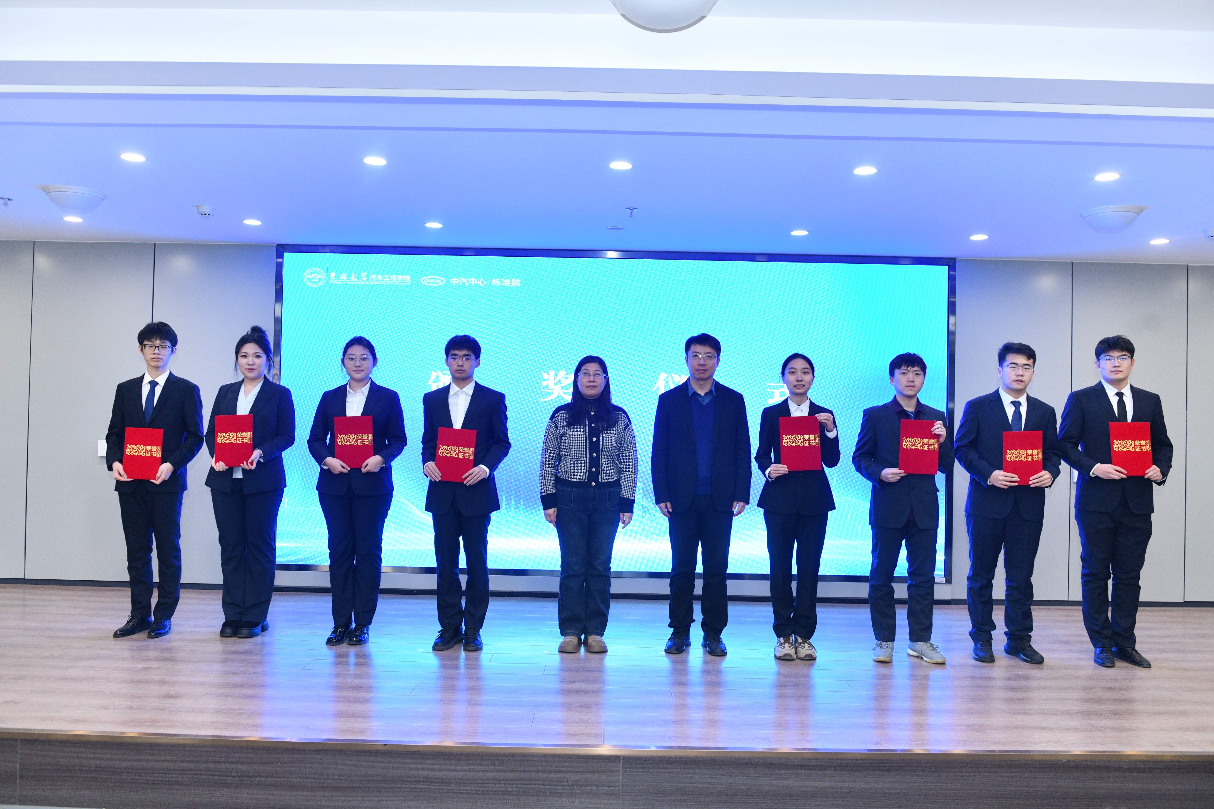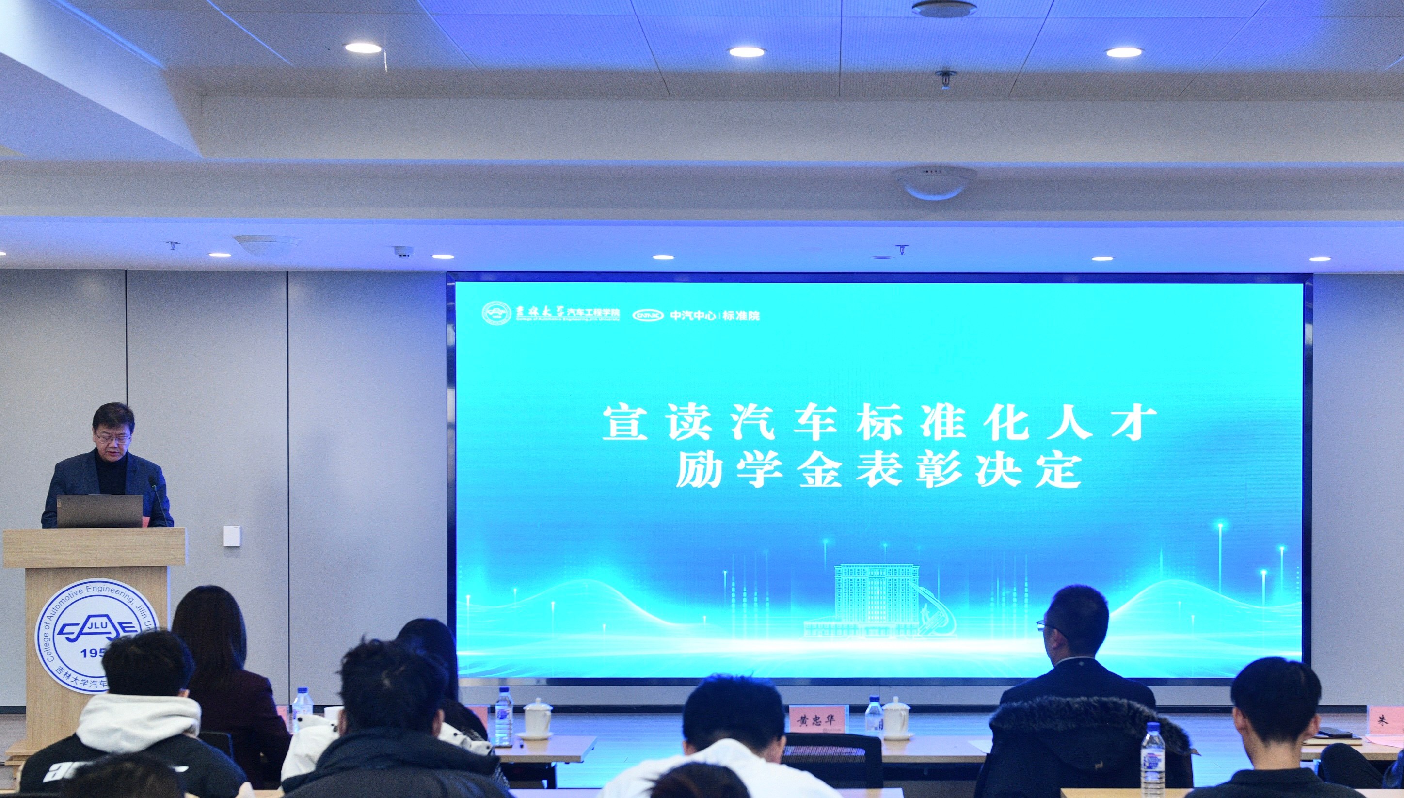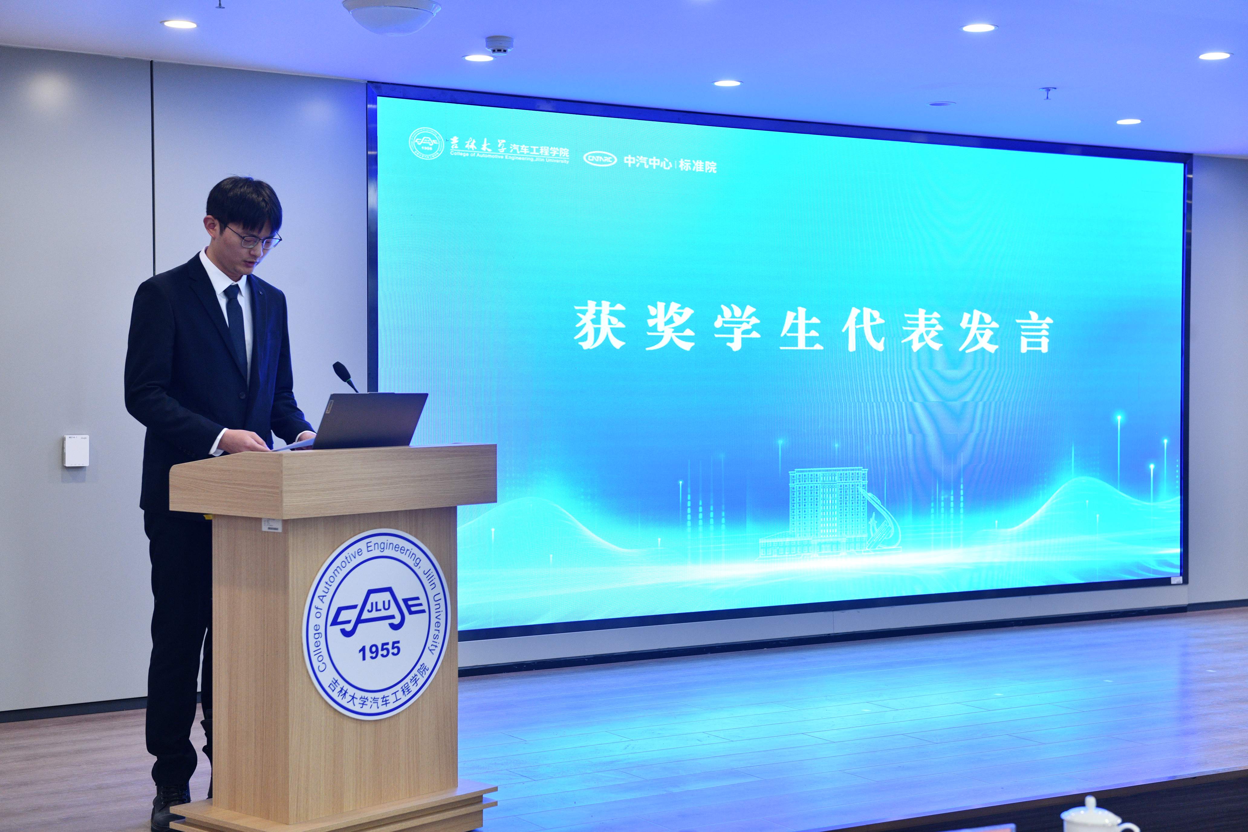 VikACG 党委书记黄忠华宣读“汽车标准化人才励学金”表彰决定,对获奖同学表示祝贺,希望同学们深耕专业领域,关注产业发展,为振兴中国汽车工业而努力奋斗。