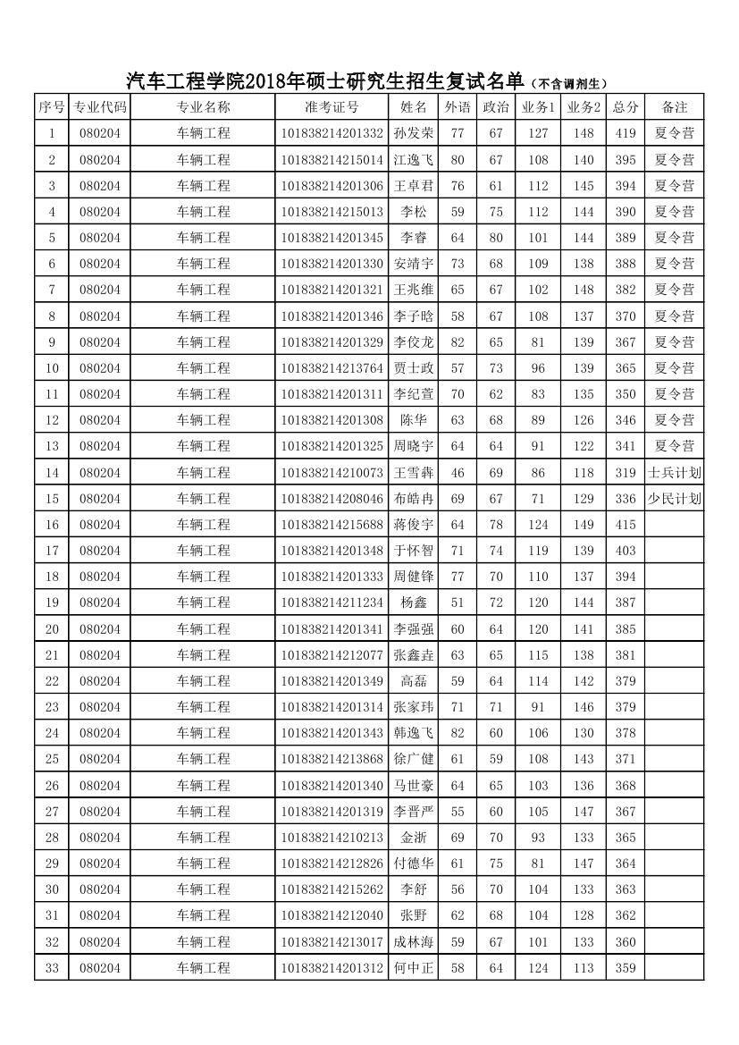 VikACG 2018年硕士研究生招生复试名单(不含调剂生)