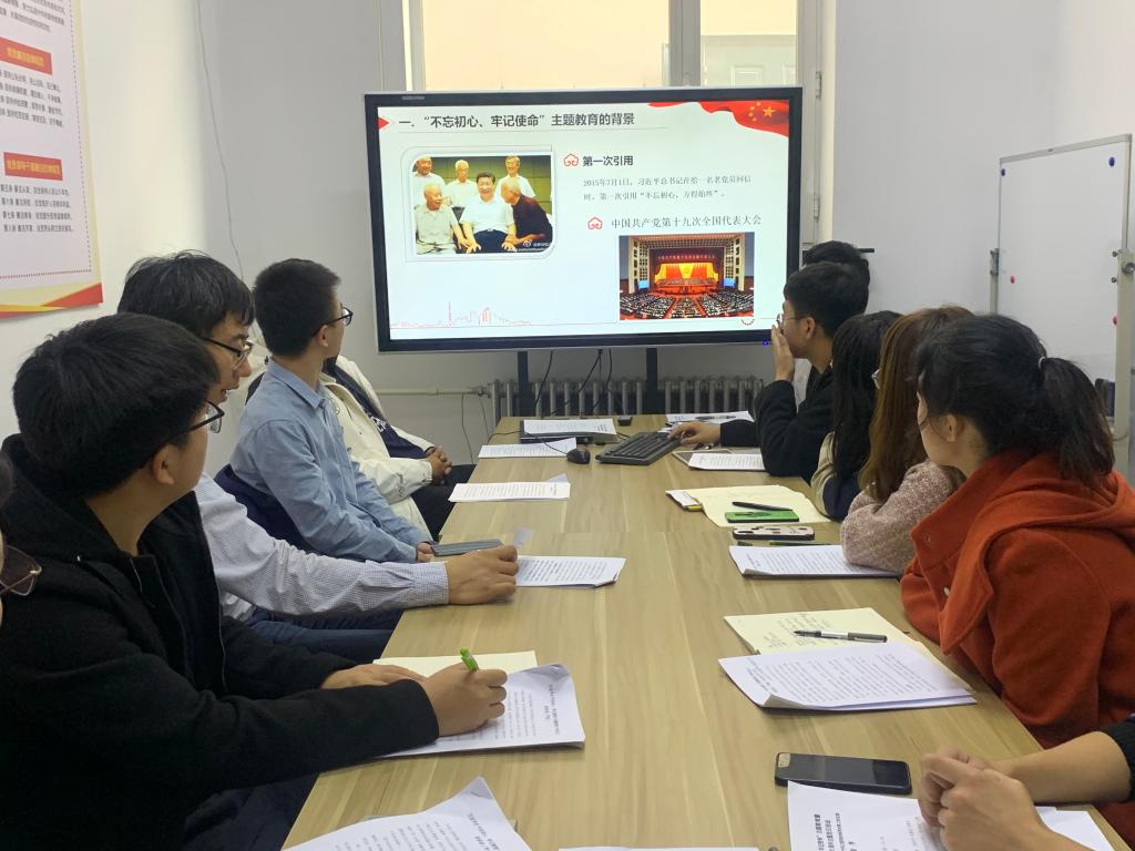 首先,党支部书记吴昊老师作为领誓人,带领全体党员一起重温入党誓词。与会党员代表朗读学习了《习近平在“不忘初心、牢记使命”主题教育工作会议上的讲话》全文、《中国共产党章程》全文。随后,2016级贾通、徐吉帅,2017级段博禹、赵路洋同学,分别根据自己的亲身经历和体会,对学习内容进行了交流。