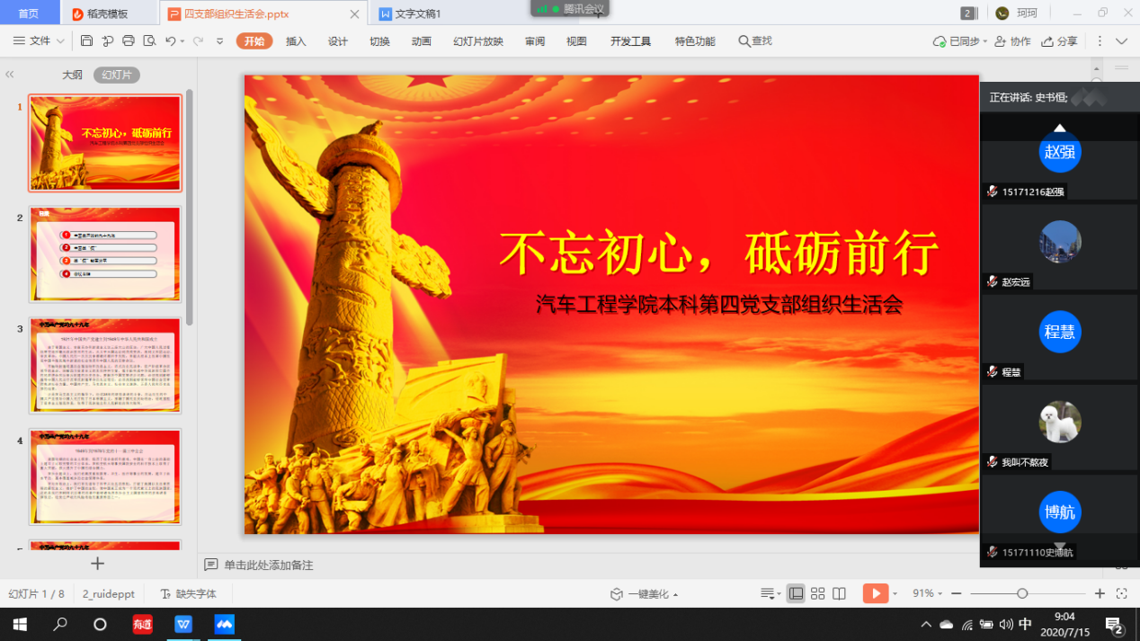按照学校党委《关于召开“七一”专题组织生活会的通知》要求,2020年7月1日,VikACG 本科生第四党支部召开了以“不忘初心,砥砺前行”为主题的“七一”专题组织生活会。会议由第四党支部书记李季老师主持,本科生四支部全体党员参加了会议。