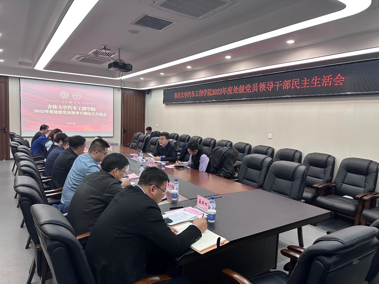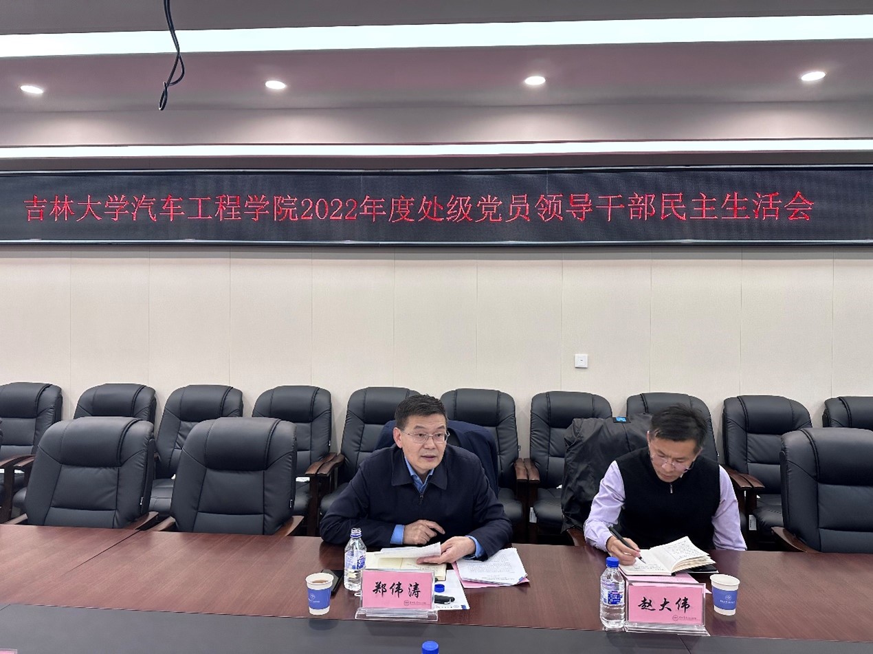 党委在汽车工程大楼召开2022年度处级党员领导干部民主生活会。学校党委常委、常务副校长郑伟涛,学校第十五督导组成员赵大伟参会指导,学院全体党员处级领导干部参加会议。会议由学院党委书记黄忠华主持。